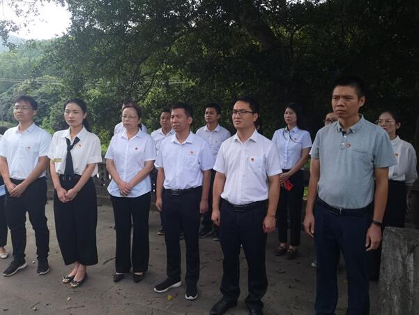 為教育引導廣大黨員筑牢黨員意識,珍惜黨員榮譽,加強黨性修養(yǎng),牢記黨的宗旨和入黨初心,同時推動黨史學習教育與愛國主義教育相結合,教育引導廣大黨員干部厚植愛黨、愛國、愛社會主義情感,不忘崢嶸歲月,賡續(xù)革命薪火。7月23日,第一黨支部委員會組織黨員干部開展黨史學習教育系列活動暨“政治生日話黨史,黨的光輝照我心”主題黨日活動,打卡太平鎮(zhèn)那馱村革命老區(qū)紅色教育基地和泗峽坳抗日烈士墓,接受愛黨愛國主義教育。