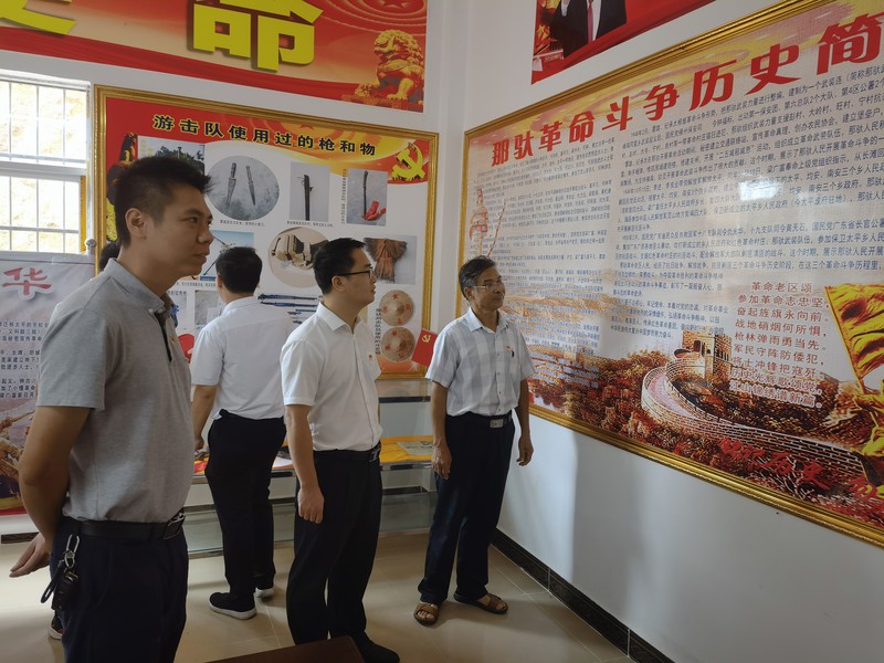 那馱村革命老區(qū)紅色教育基地以展板、實物的形式,展示珍貴照片、人物事跡、革命故事等,再現(xiàn)了抗日戰(zhàn)爭、解放戰(zhàn)爭時期那馱村人民英勇抗戰(zhàn)的光輝歷史,描繪了黨的十八大以來那馱村的發(fā)展情況。黨員干部們認真聆聽講解,駐足參觀文字圖片和實物,接受了一次深刻的紅色教育和精神洗禮。