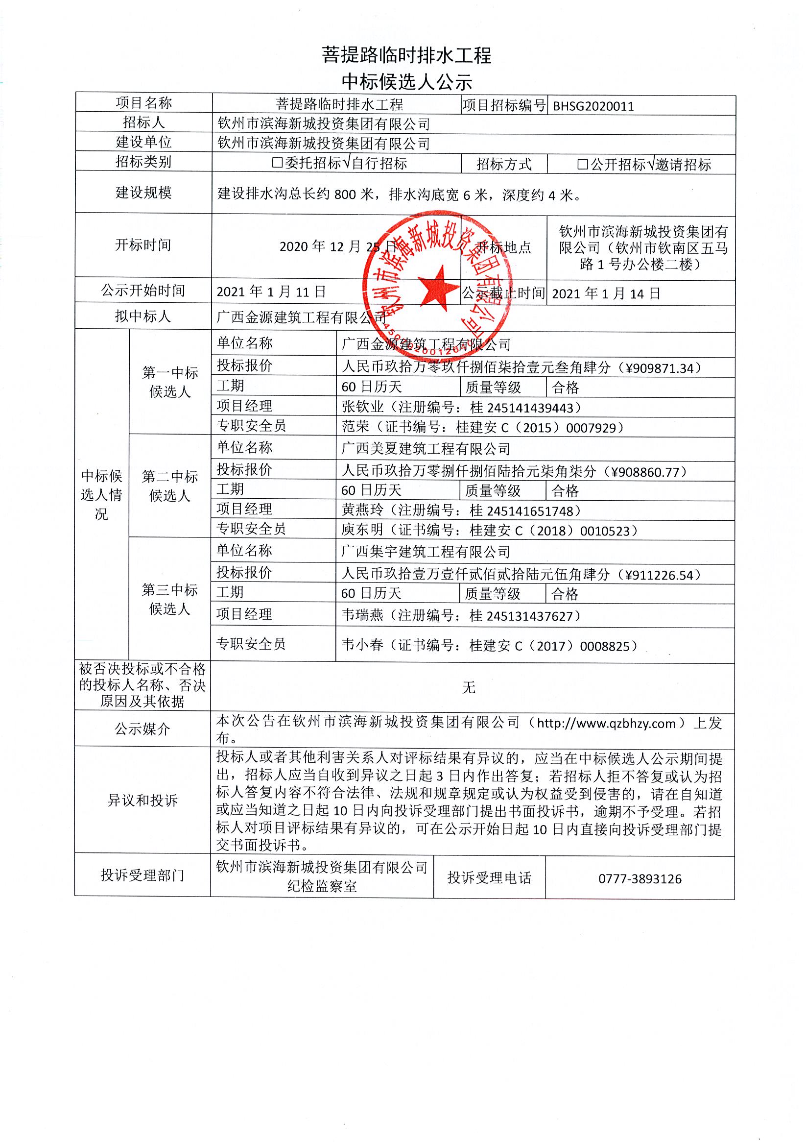 菩提路臨時排水工程中標(biāo)候選人公示