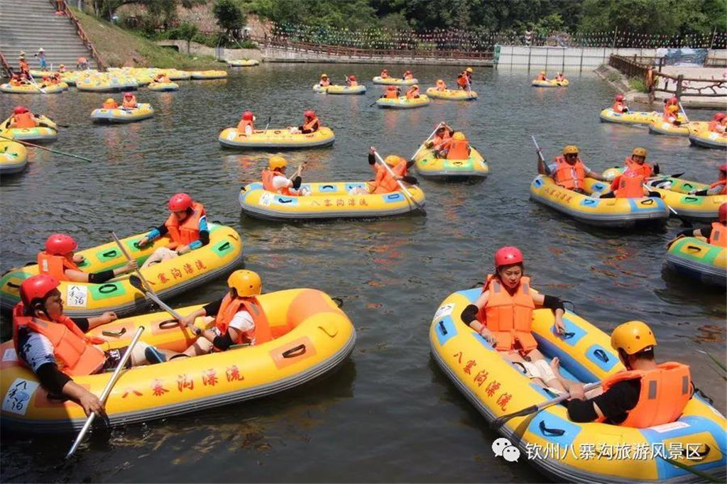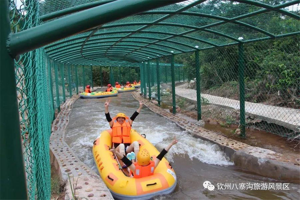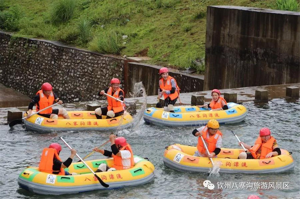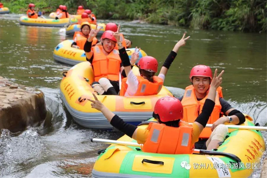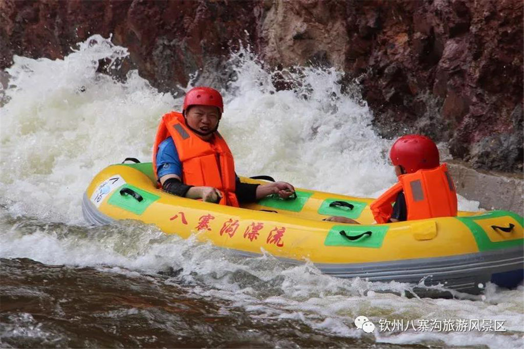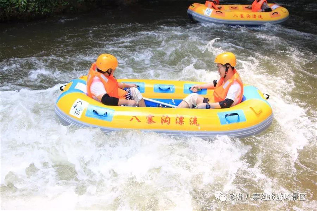 游人乘坐雙人橡皮艇,從清涼的水花中一躍而過,時而輕盈如燕,時而奔騰如虎,一路漂蕩、一路歡叫。