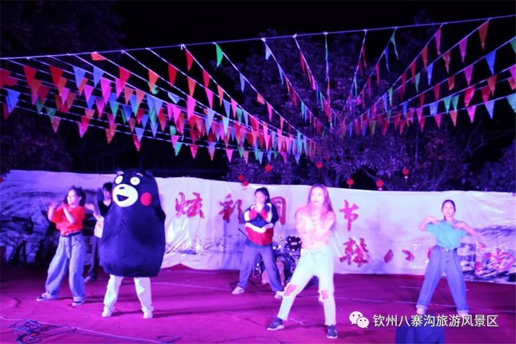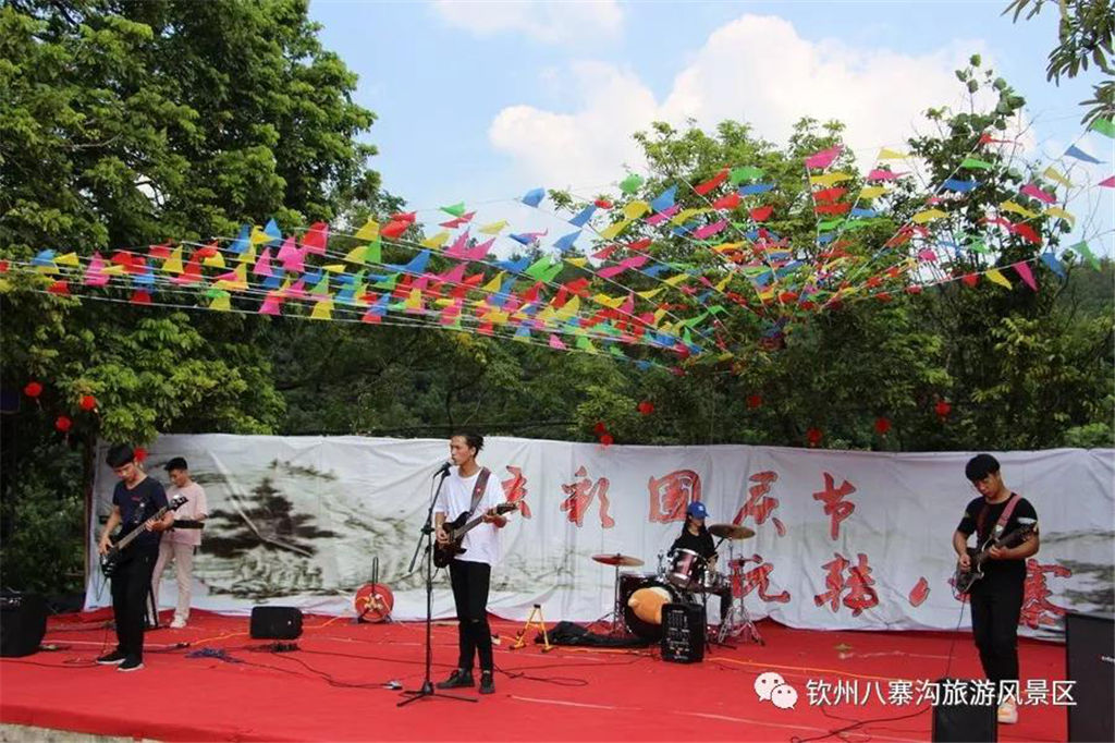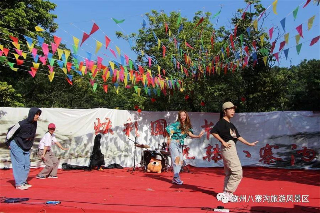 國慶期間景區(qū)舉辦以“炫彩國慶節(jié),玩轉八寨溝”為主題的系列活動受到眾多游客親睞。游客們白天可以觀看精彩歌舞文藝演出,玩真人CS運動,品嘗各種各樣的特產(chǎn)美食,學制作欽州坭興陶,體驗欽州第一漂—八寨溝森林漂流,登山徒步暢游山水,呼吸新鮮空氣,天然水潭戲水其樂無窮,整個景區(qū)一片游客如織、喜樂融融的景象。