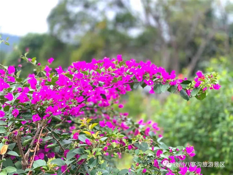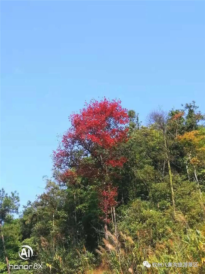 很多人都說,八寨溝好像是沒有冬天的。在北方雪花紛飛之時,八寨溝仍然綠意盎然,仍然溫暖如春。但似乎是預知了冷空氣的到來,八寨溝的楓樹也悄然披上紅裝,梅園盡頭,萬壽谷公路兩側,俯首間,一樹紅葉,滿徑絳色;仰望中,層林盡染,天然畫卷。梅園盡頭,五孔橋旁,流水潺潺,一潭清水,楓葉輕浮,好一幅天然的臨水丹楓圖。
