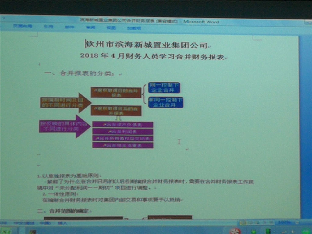 為了提高財(cái)務(wù)人員財(cái)務(wù)報(bào)表編報(bào)質(zhì)量和工作效率,2018年4月15日上午,計(jì)劃財(cái)務(wù)部李東波經(jīng)理主持召開學(xué)習(xí)會,學(xué)習(xí)編制合并報(bào)表的相關(guān)業(yè)務(wù)知識,集團(tuán)及各子公司全體財(cái)務(wù)人員參會學(xué)習(xí)。會上洪家泰副經(jīng)理講解了合并會計(jì)報(bào)表及附注的編制方法及要求,規(guī)范和統(tǒng)一報(bào)表和附注的格式,并針對同一控制下企業(yè)合并及非同一控制下企業(yè)合并的少數(shù)股東權(quán)益、歸屬于母公司所有者權(quán)益進(jìn)行了詳細(xì)講解。