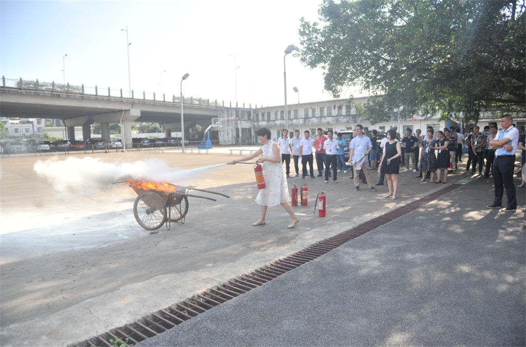 授課后,在張教官帶領(lǐng)下開展了人員密集公共場(chǎng)所疏散及滅火器操作的實(shí)物演練。