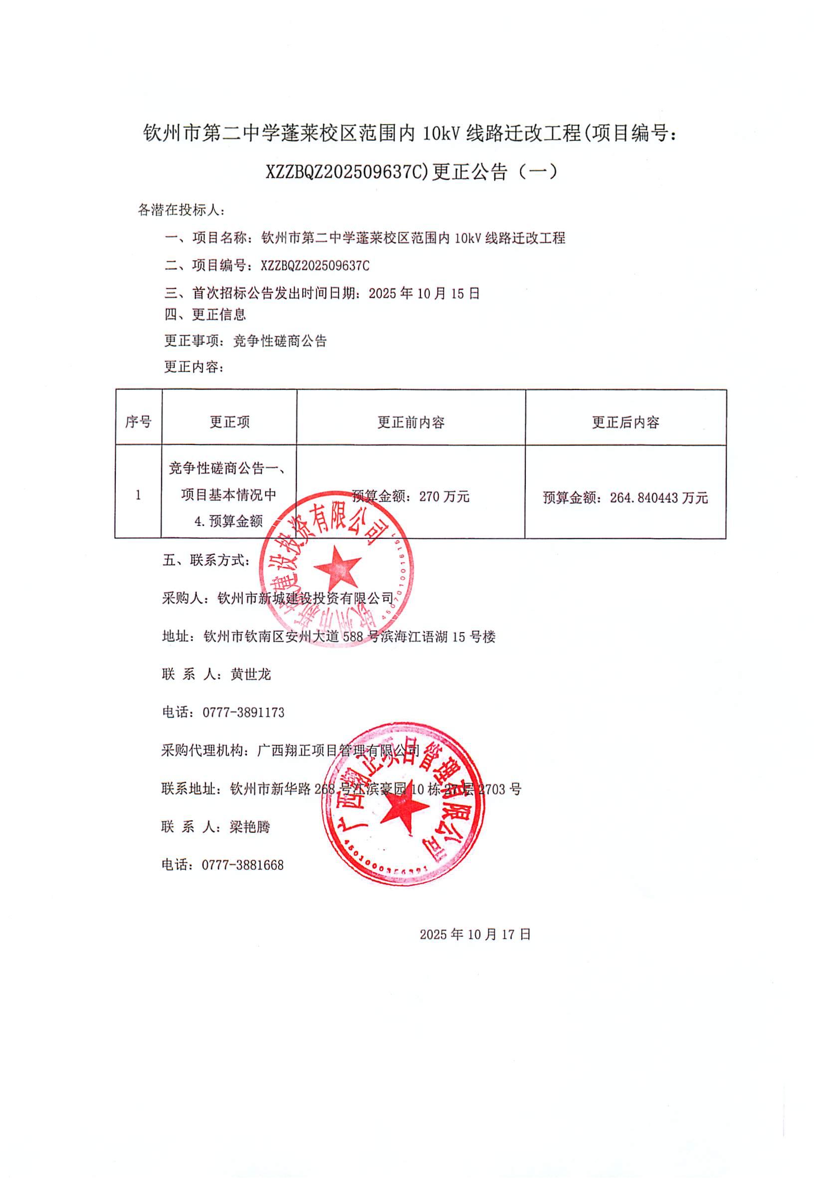 欽州市第二中學(xué)蓬萊校區(qū)范圍內(nèi)10kV線(xiàn)路遷改工程(項(xiàng)目編號(hào): XZZB...