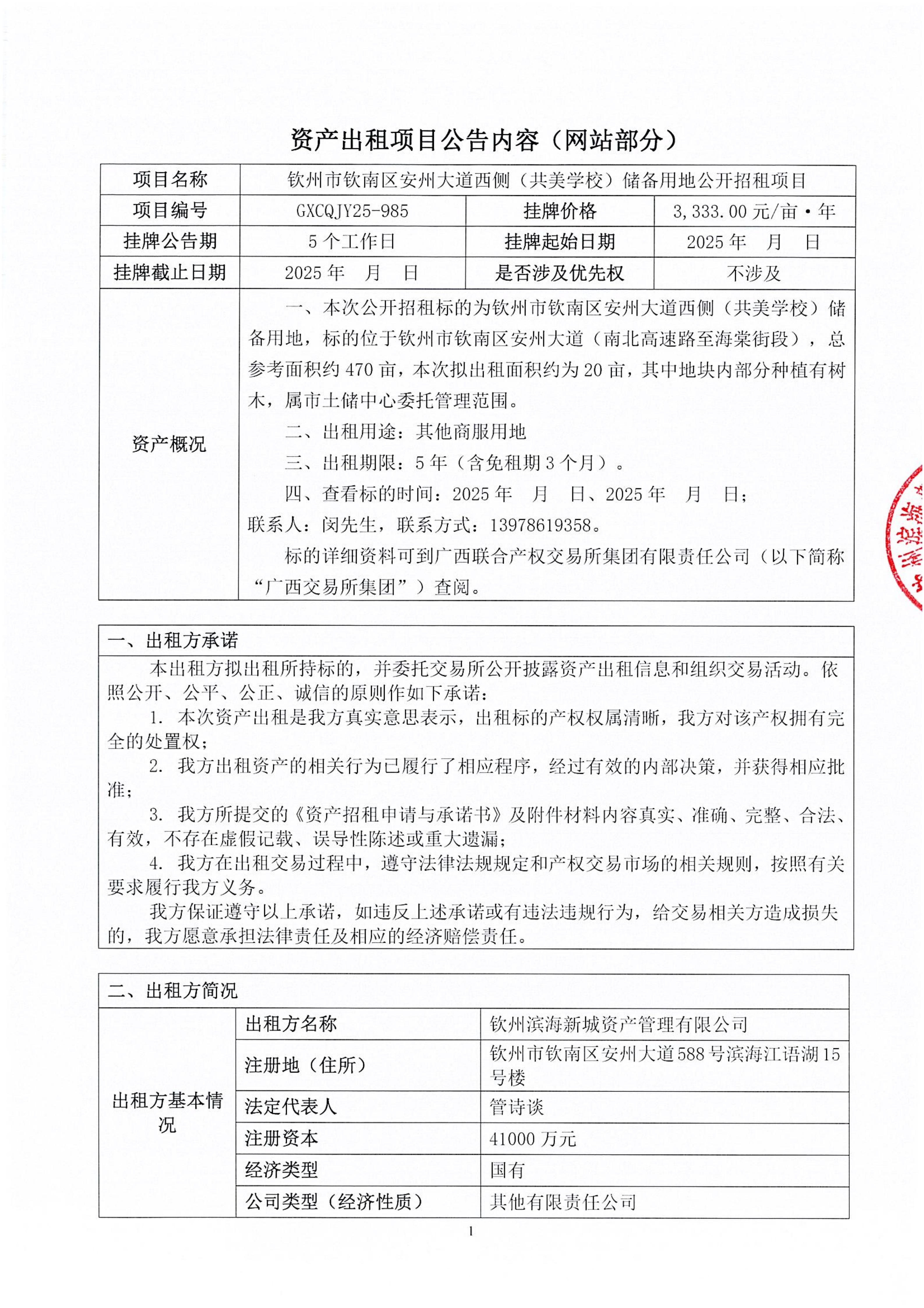 欽州市欽南區(qū)安州大道西側(cè)(共美學(xué)校)儲(chǔ)備用地公開(kāi)招租項(xiàng)目