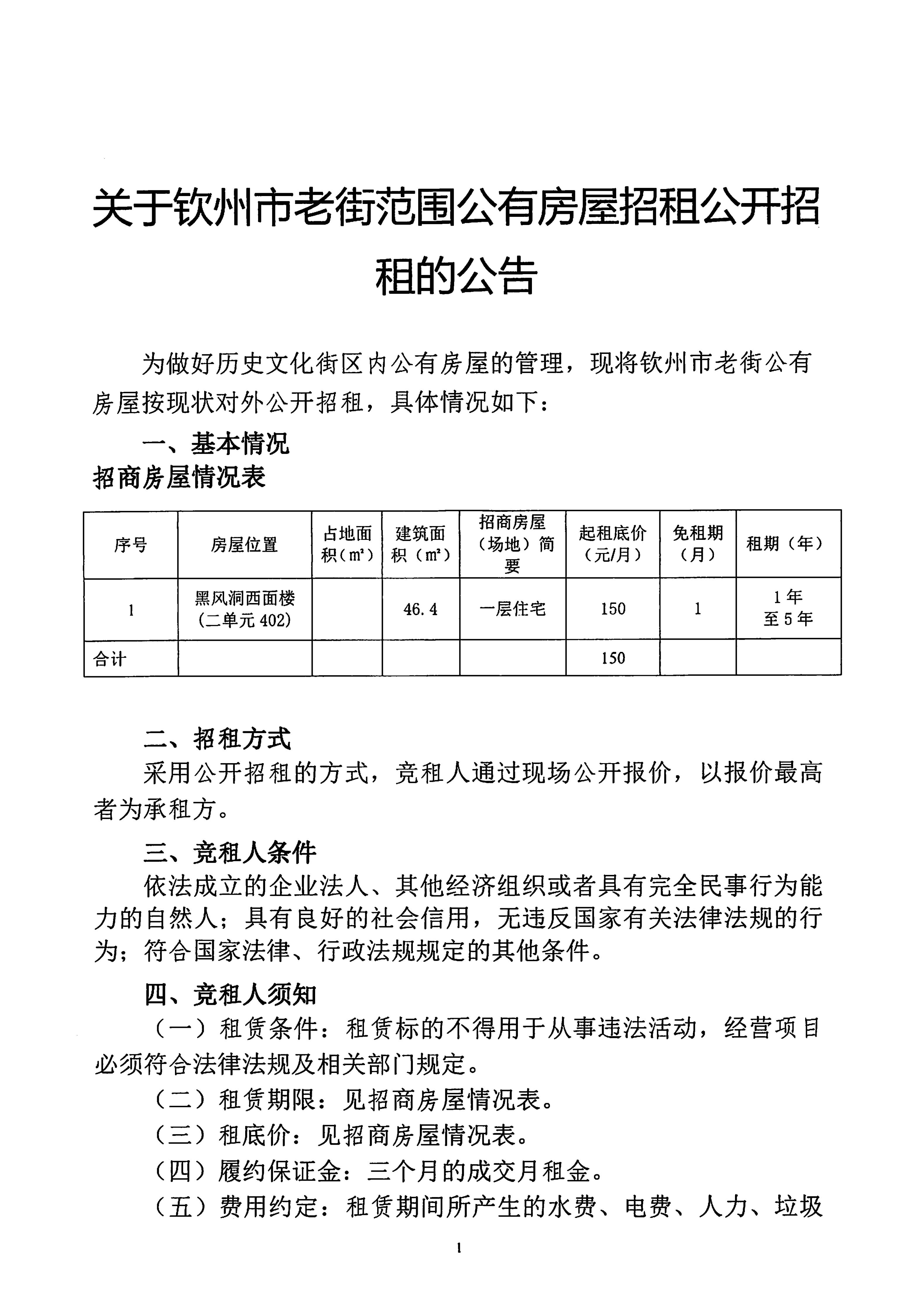關(guān)于欽州市老街范圍公有房屋招租公開(kāi)招租的公告(黑風(fēng)洞西面樓二單元402...