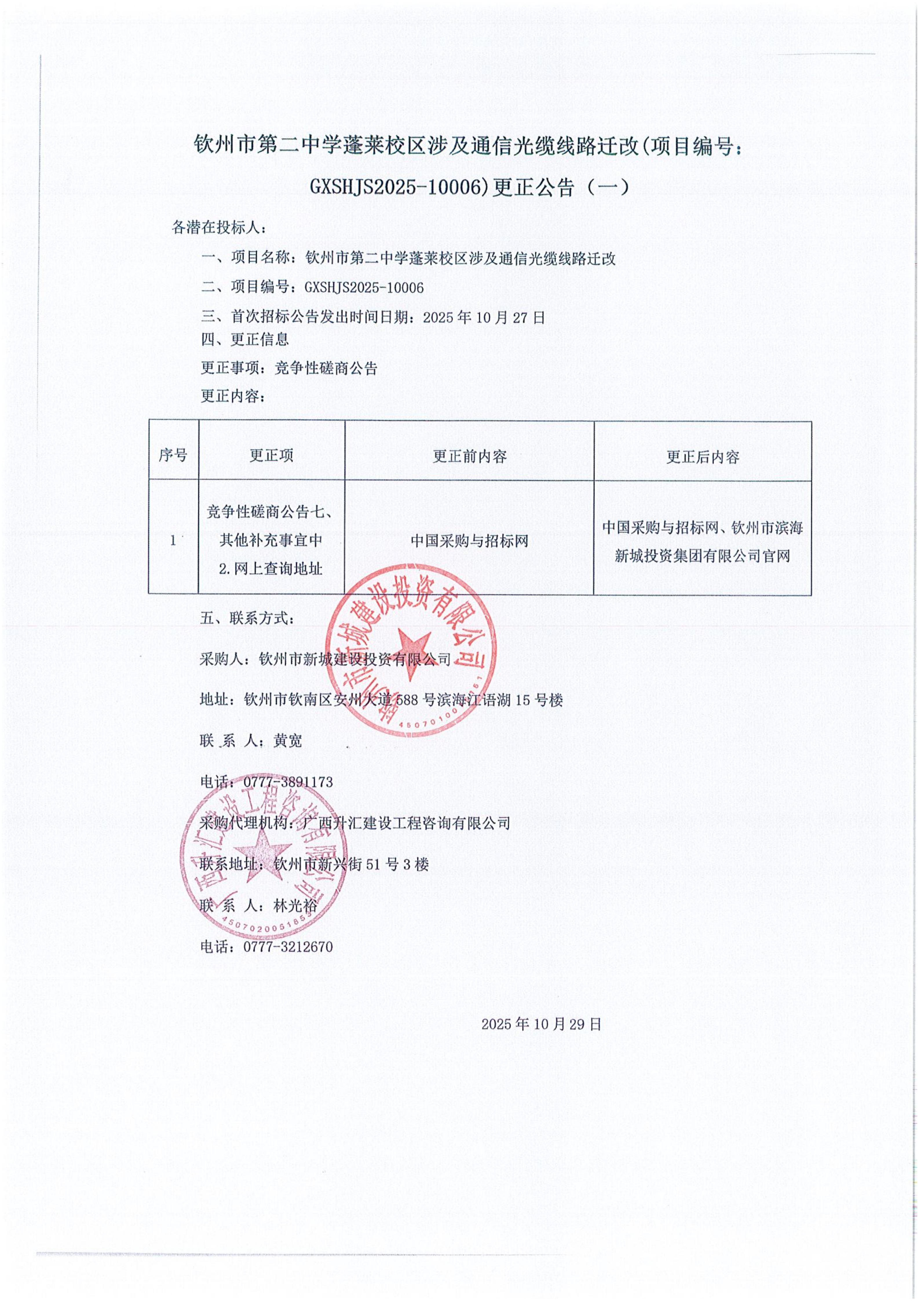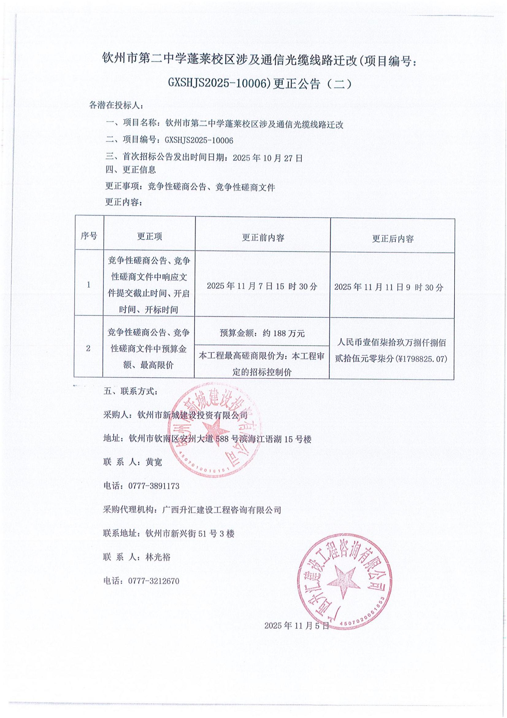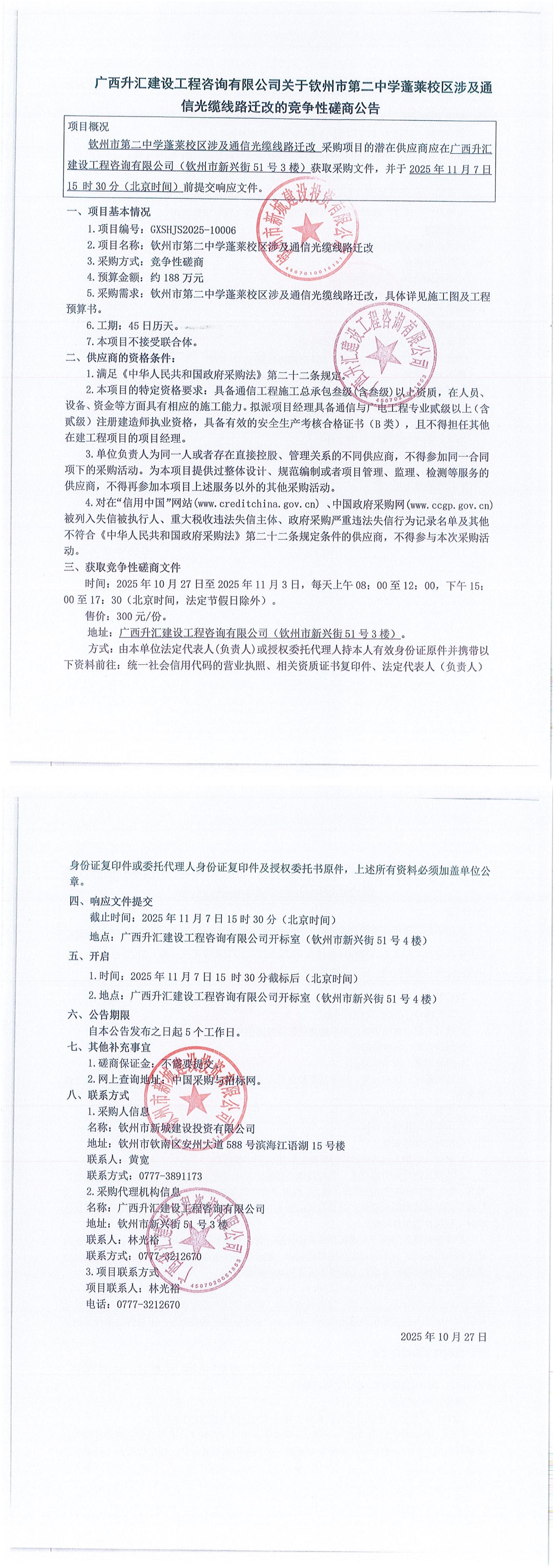 關(guān)于欽州市第二中學(xué)蓬萊校區(qū)涉及通信光纜線(xiàn)路遷改的競(jìng)爭(zhēng)性磋商公告