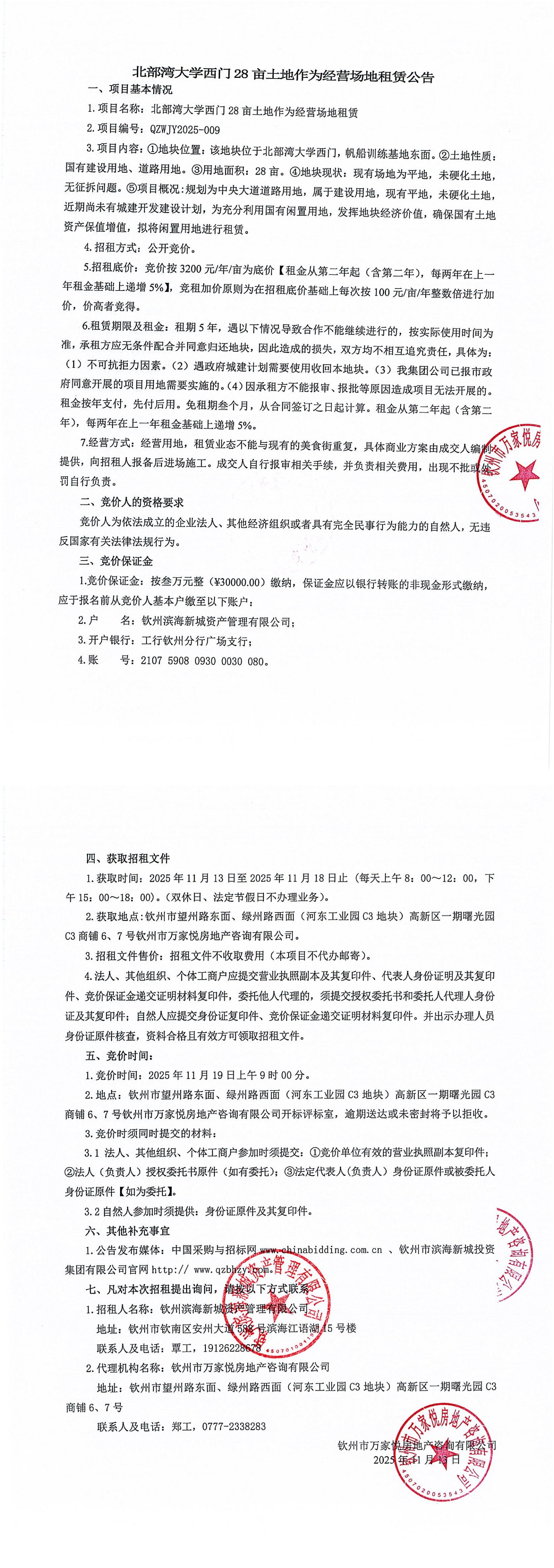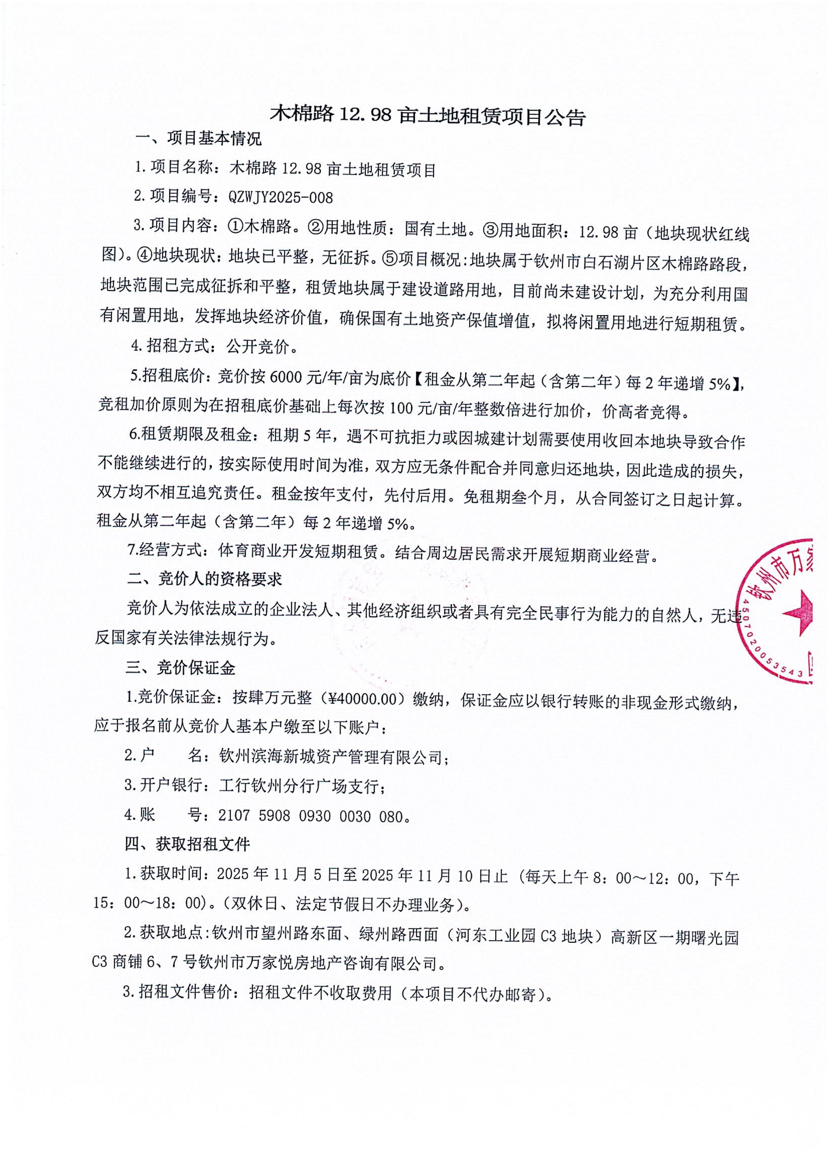 欽州市北部灣大學(xué)東北面6畝地塊公開(kāi)招租項(xiàng)目