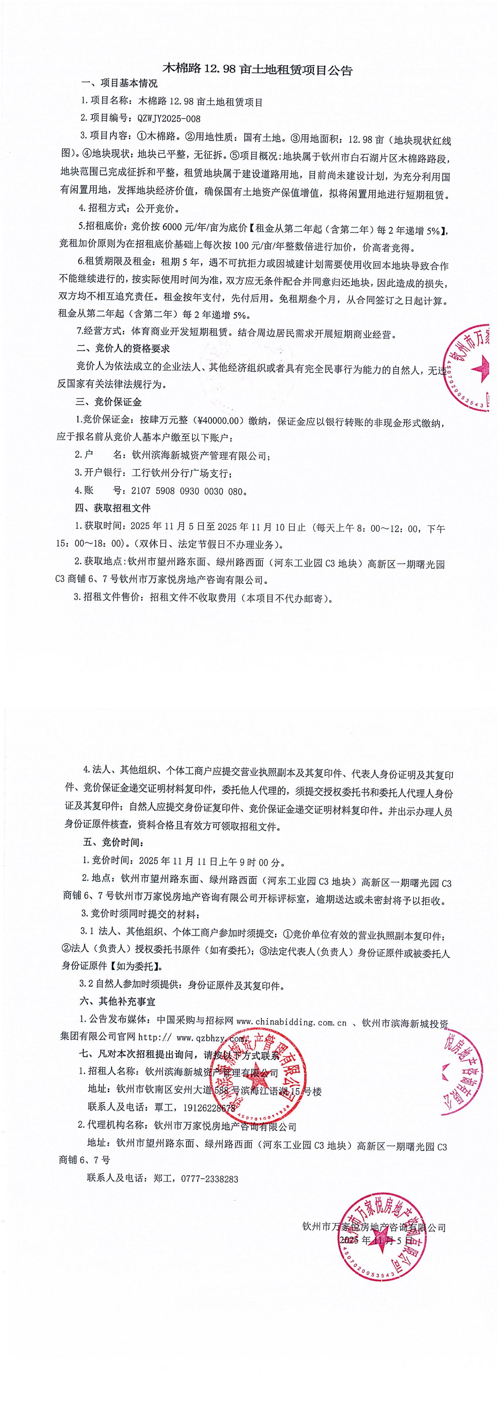 木棉路12.98畝土地租賃項(xiàng)目公告