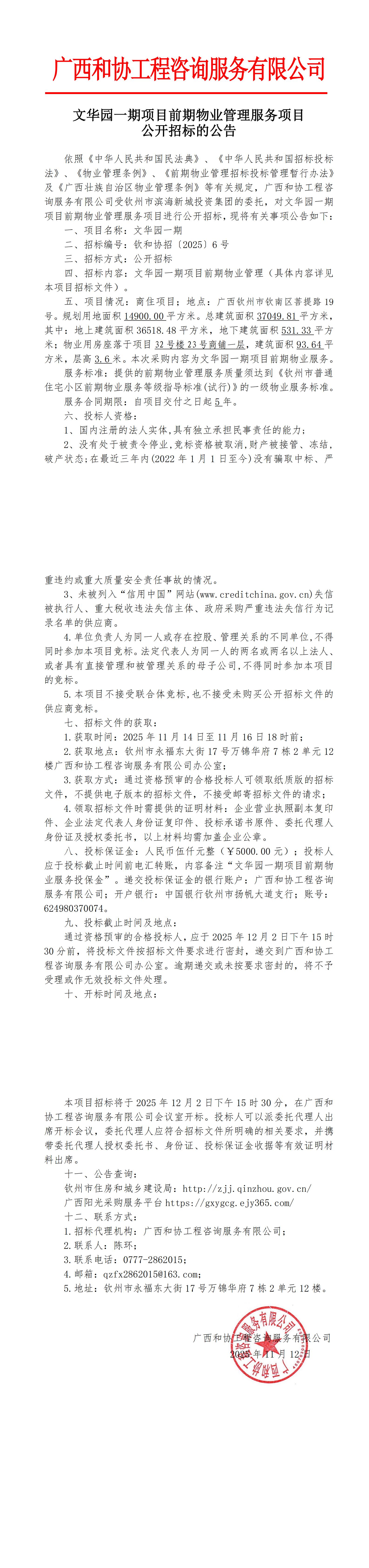 文華園一期項(xiàng)目前期物業(yè)管理服務(wù)項(xiàng)目公開(kāi)招標(biāo)的公告