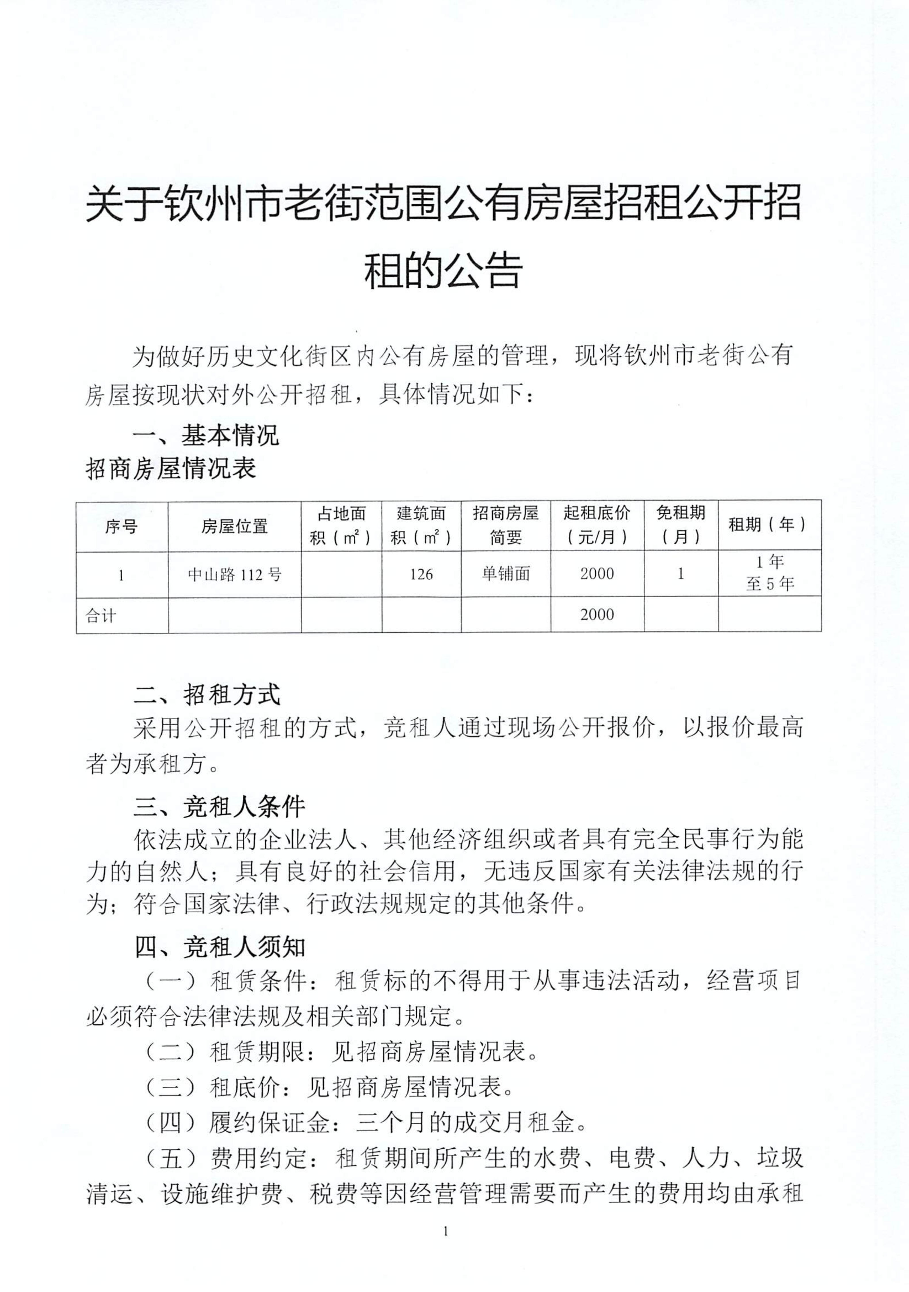 關(guān)于欽州市老街范圍公有房屋招租公開(kāi)招租的公告