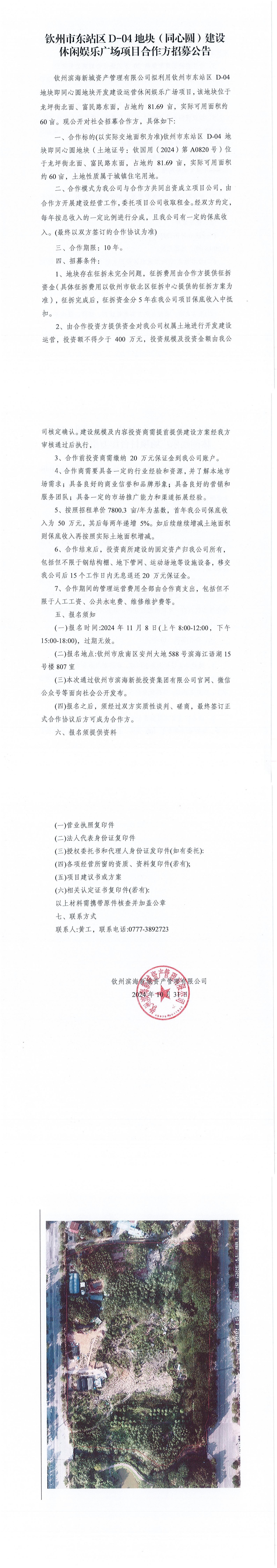 欽州市東站區(qū)D-04地塊(同心圓)建設(shè)休閑娛樂廣場項目合作方招募公告