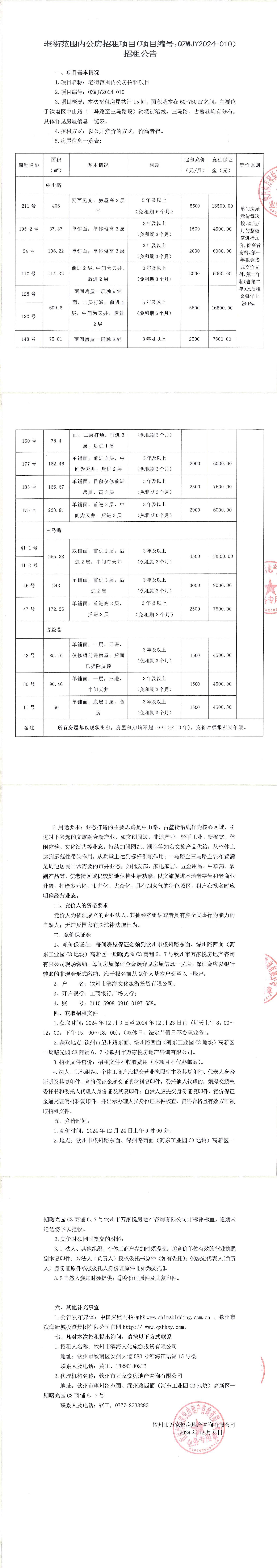 老街范圍內(nèi)公房招租項目(項目編號:QZWJY2024-010)招租公告