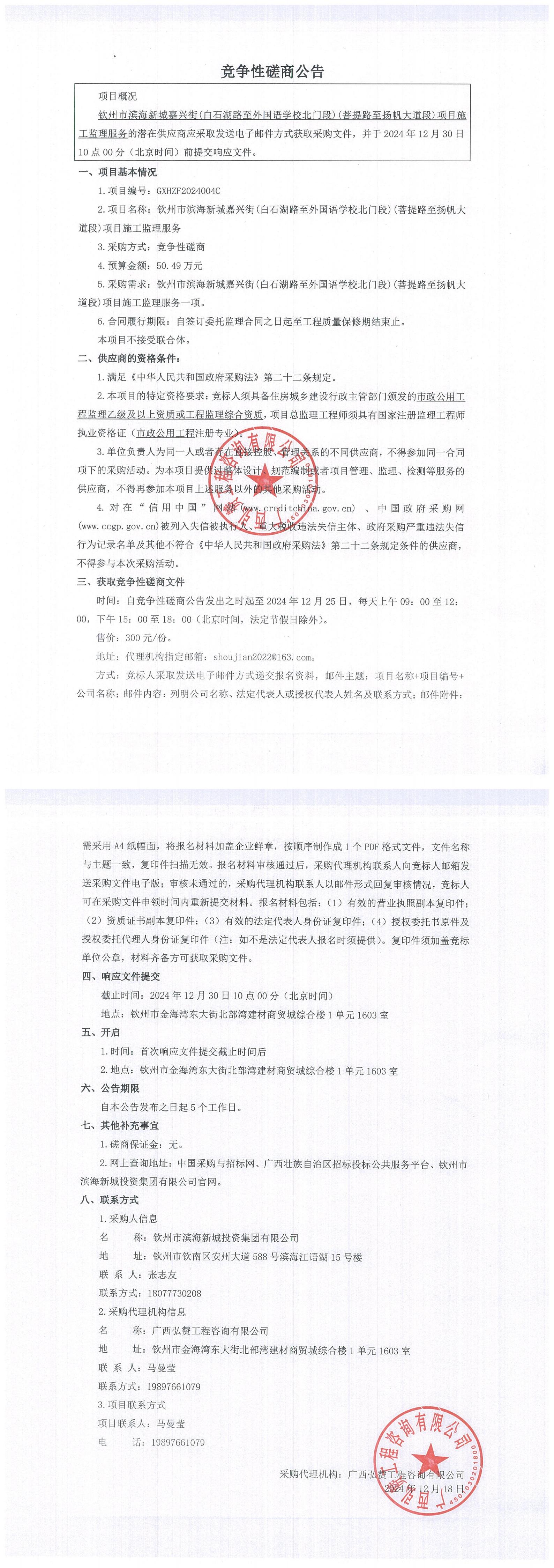 競爭性磋商公告-欽州市濱海新城嘉興街(白石湖路至外國語學(xué)校北門段)(菩...