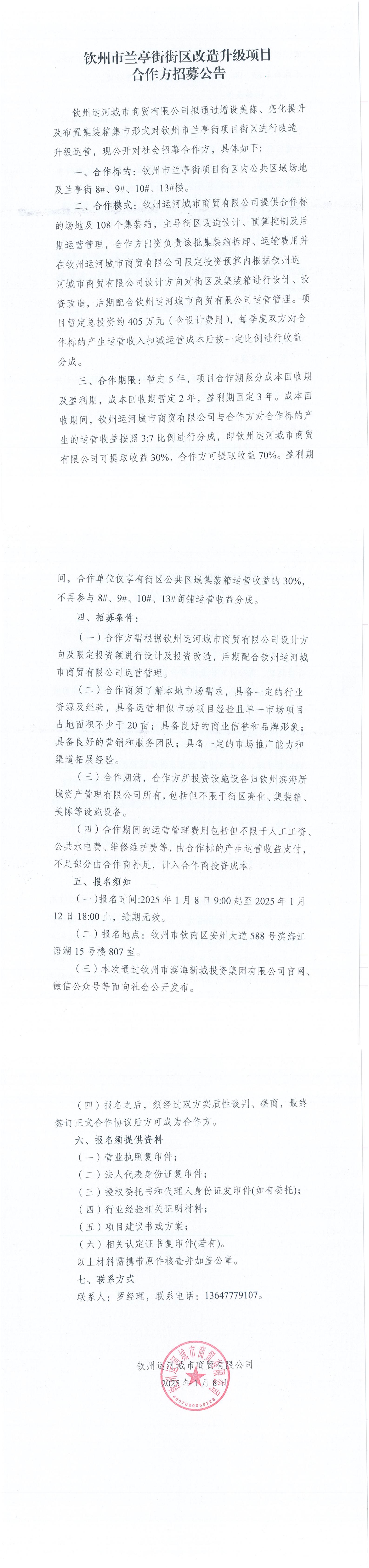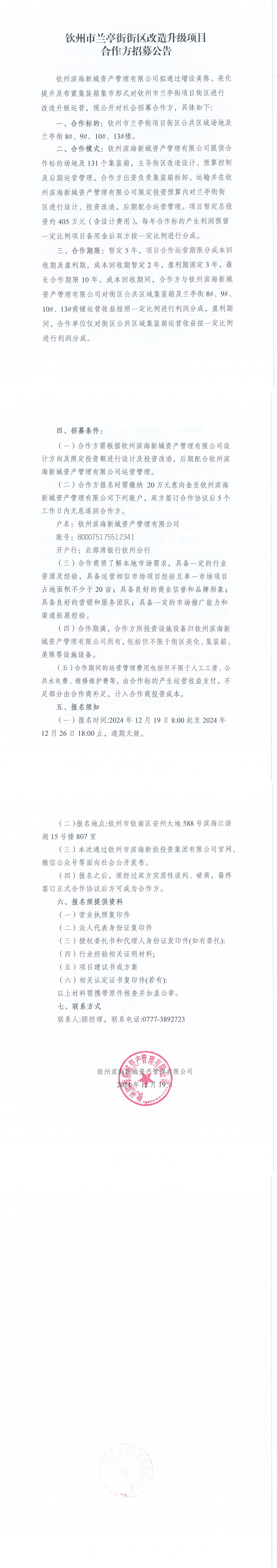 欽州市蘭亭街街區(qū)改造升級項目合作方招募公告