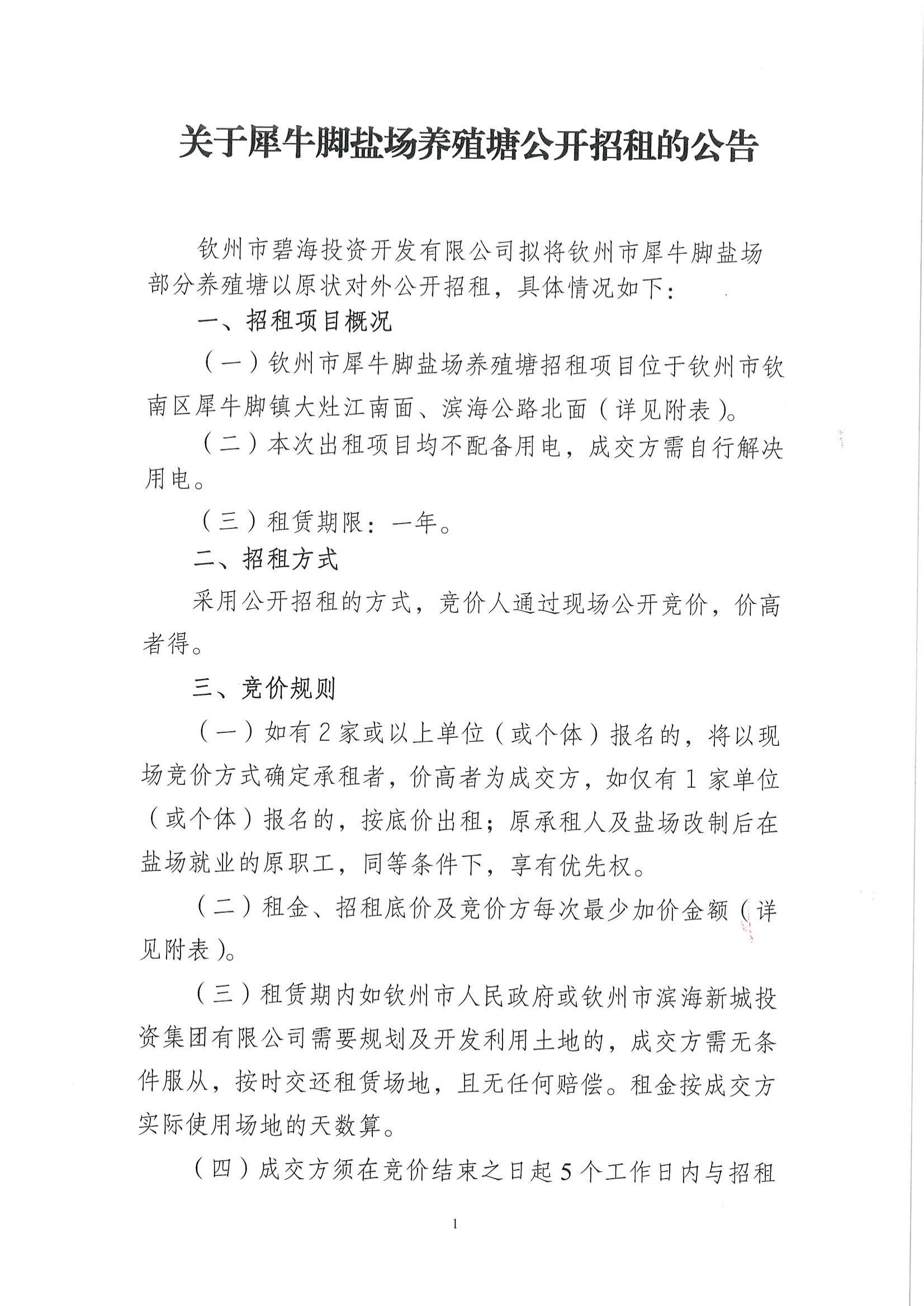 關(guān)于犀牛腳鹽場養(yǎng)殖塘公開招租的公告