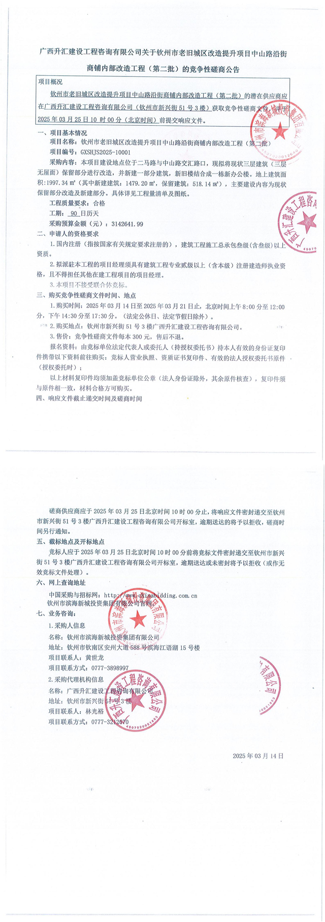 競爭性磋商公告-欽州市老舊城區(qū)改造提升項目中山路沿街商鋪內(nèi)部改造工程(...