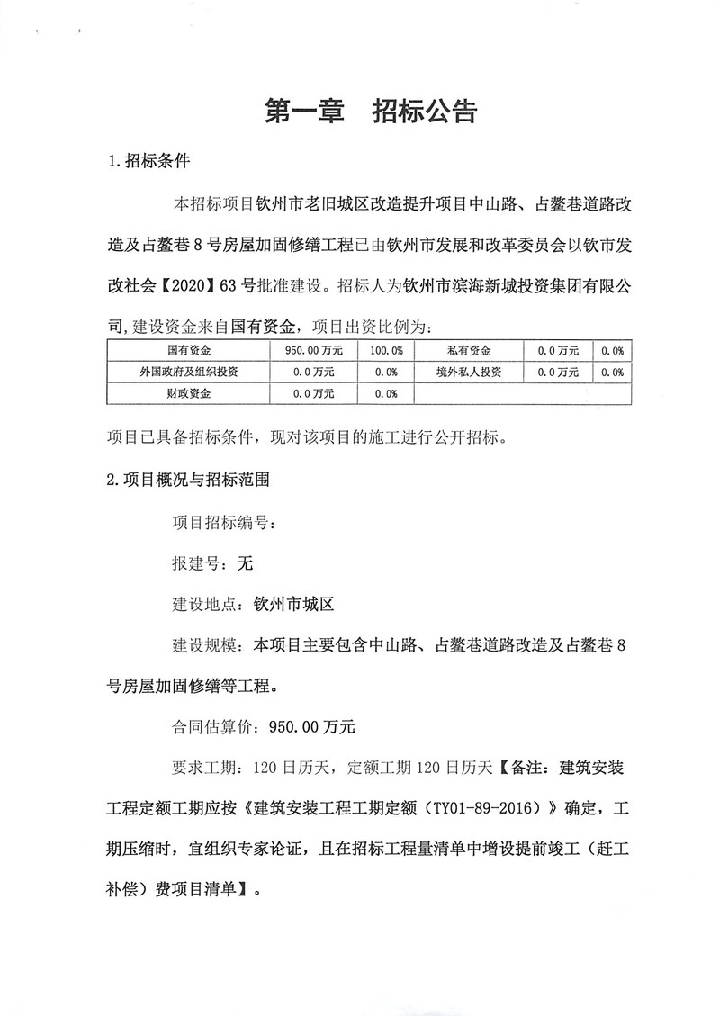 欽州市老舊城區(qū)改造提升項目中山路、占鰲巷道路改造及占鰲巷8號房屋加固修繕工程