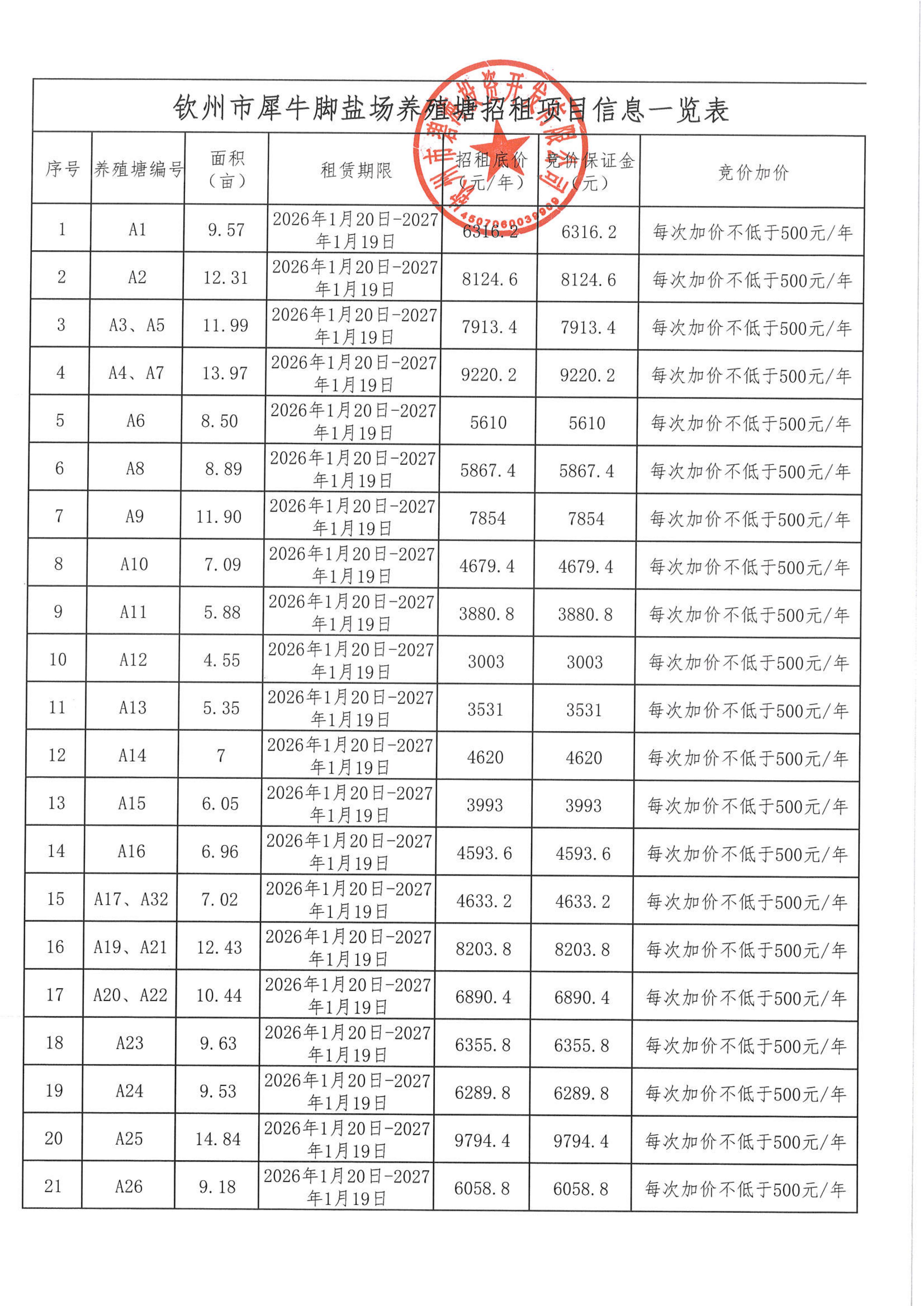 關于犀牛腳鹽場養(yǎng)殖塘公開招租的公告