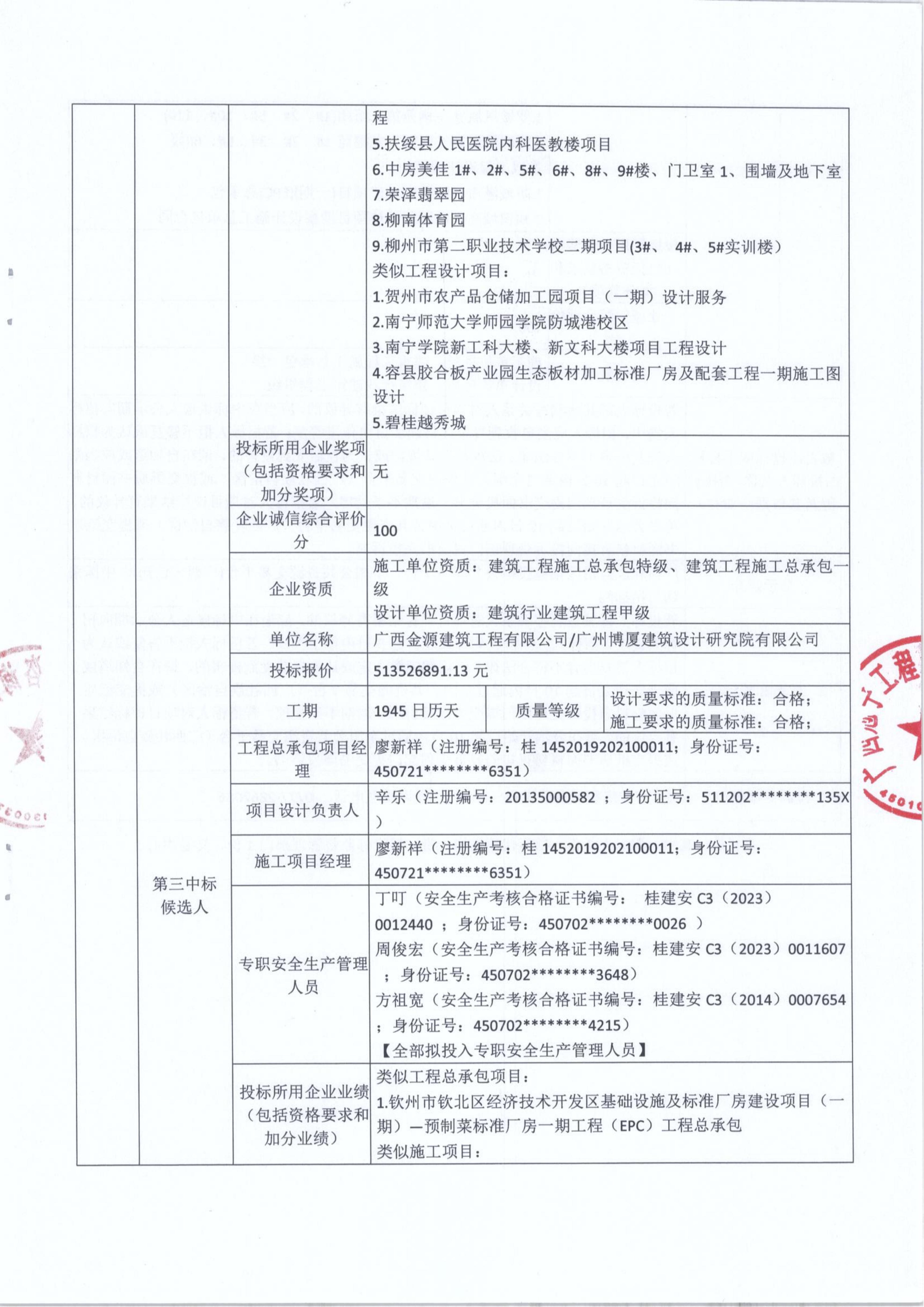 中標(biāo)候選人公示