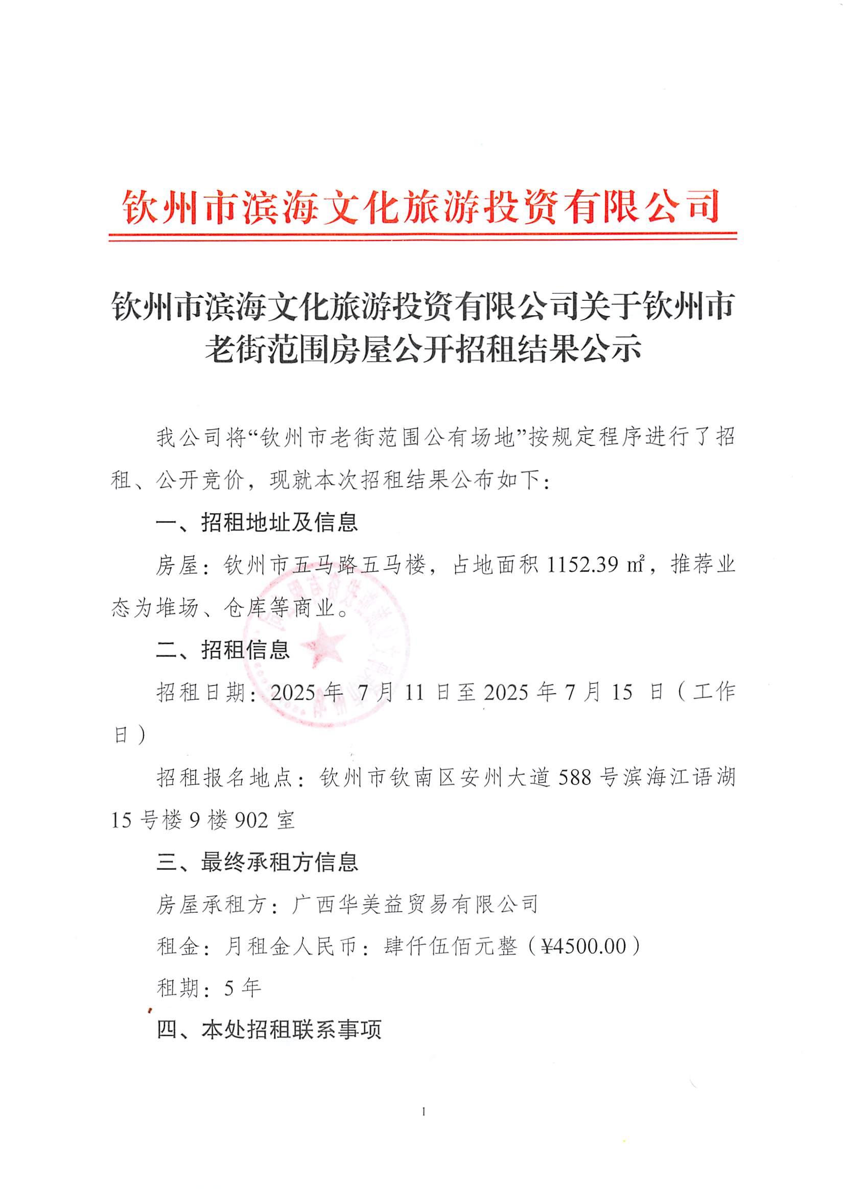 欽州市老街范圍房屋公開招租結(jié)果公示(五馬路五馬樓)