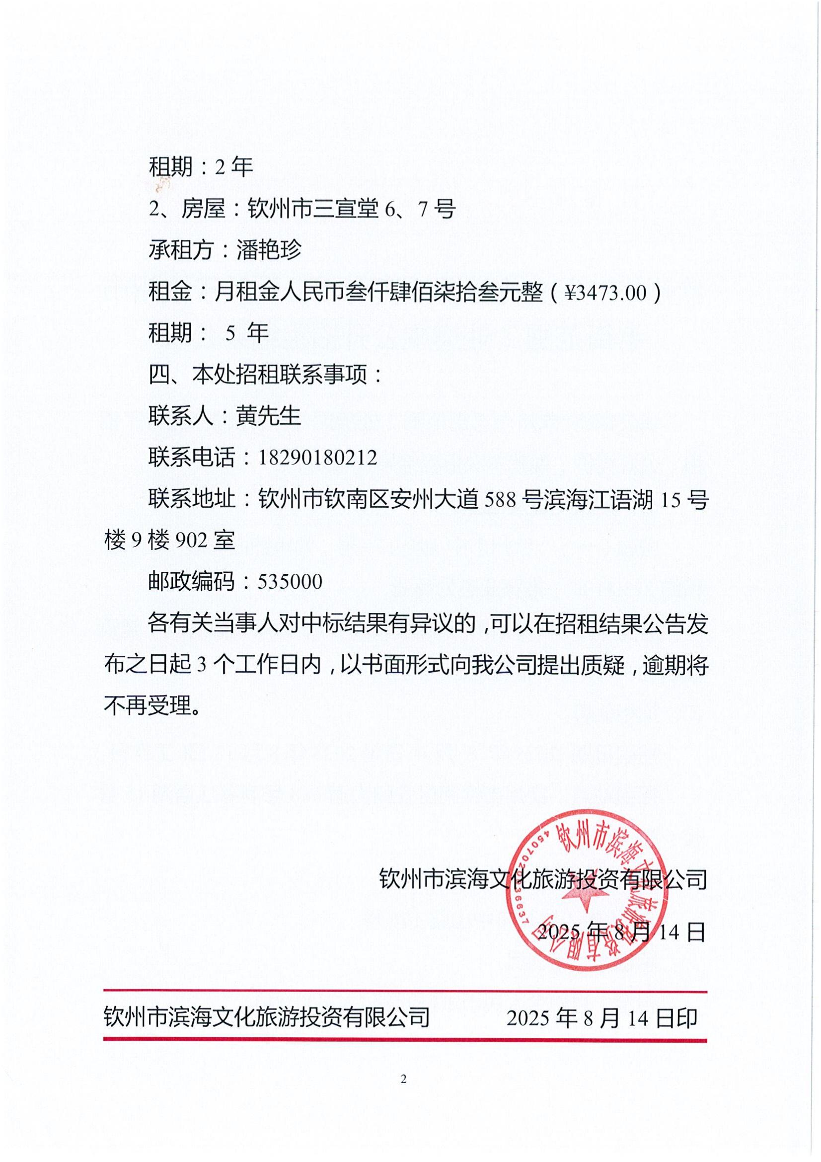 關(guān)于欽州市老街范圍2處公房公開招租結(jié)果公示